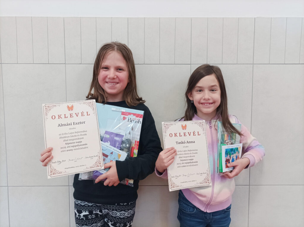 A püspökladányi Erőss Lajos Református Általános Iskola és Óvoda által megrendezett Népmese napja 2025. évi rajzpályázaton iskolánk két tanulója részesült díjazásban.
