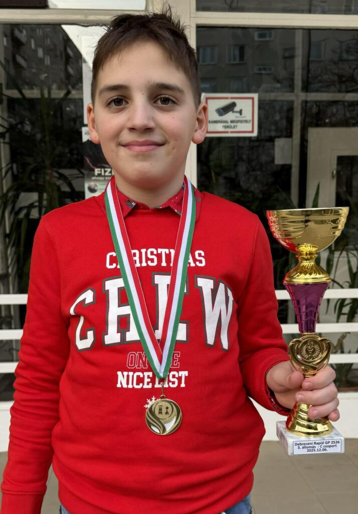 A hétvégén megrendezett Mikulásnapi Rapid GP sakkversenyen Vadon Benedek 5.b osztályos tanulónk eggyel magasabb korosztályban versenyezve I. helyezést ért el. Gratulálunk!